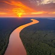 The Amazon River is a famous river occupying the Amazon rainforest in northern Brazil. It has a huge basin which is two-fifths of national territory with the whole river taking up three-fifths. It’s the second-largest river in the world for length and the world's largest for water flow though there is an ongoing debate on the exact length measurements. The Amazon River has a total of 18 tributaries. Like the Amazon rainforest, the climate is hot, humid, and rainy. The most common animals living around the river are monkeys, birds, and insects. Inside the river, fish are very common. 2,500 species have been found and more are being discovered as time goes on. Piranhas are among the most common species of fish. The Amazon River also has diverse vegetation and a lush canopy of trees covering the river. The Amazon River is a symbol of Brazil and one of the most significant landscapes in the world.